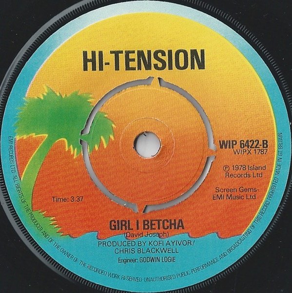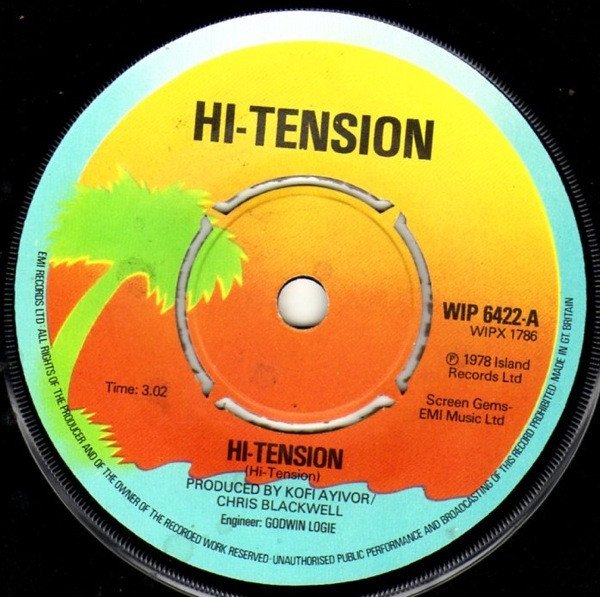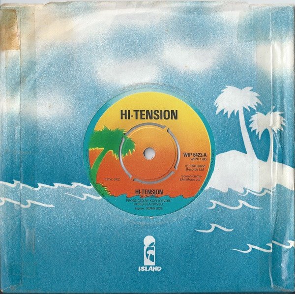 This is the first pressing that prints HI-TENSION on the label in a normal font compared to [url=http://www.discogs.com/release/778317]the later pressing[/url] which uses the band name as a logo with a lightning flash and stylised font.