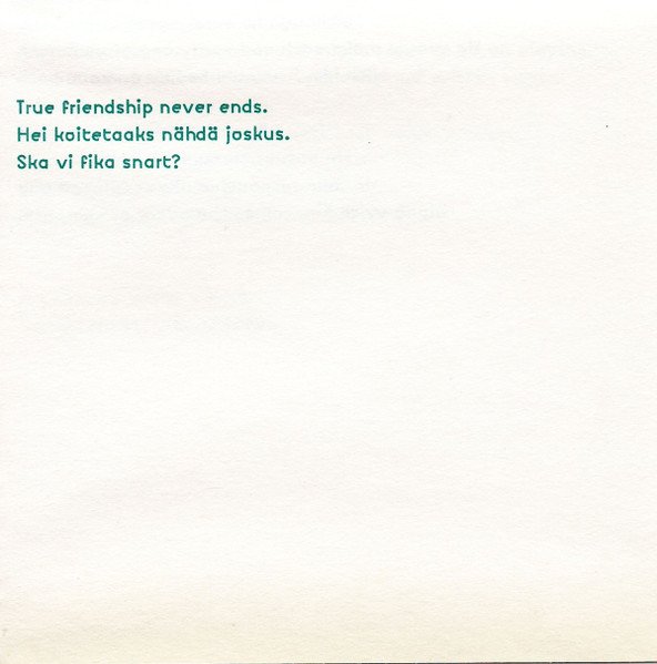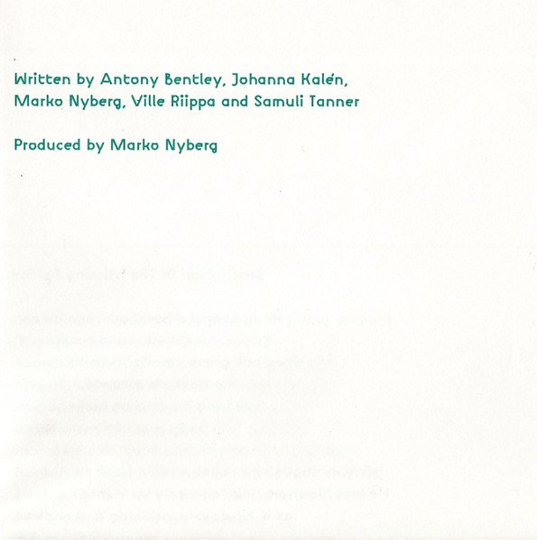 Mixed by Marko Nyberg at El Camino Studio, Helsinki except track 8 mixed by Marko Nyberg and Henkka Niemistö Mastered by Henkka Niemistö at Chartmakers, Helsinki (C) & (P) El Camino Records 2013 Manufactured in the EU Released in a digisleeve, one side contains the CD, the other an envelope containing a photograph, and a "letter" with the poem and credits.
