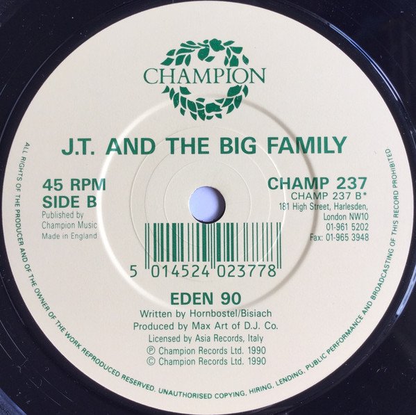 ℗ Champion Records Ltd. 1990 © Champion Records Ltd. 1990 Side A: written by various composers Published by various publishing companies Labels: J.T. And The Big Family Picture sleeve (where applicable - also issued in Champion company sleeve / plain sleeve): JT And The Big Family