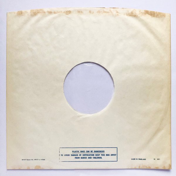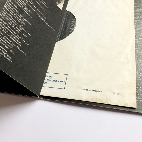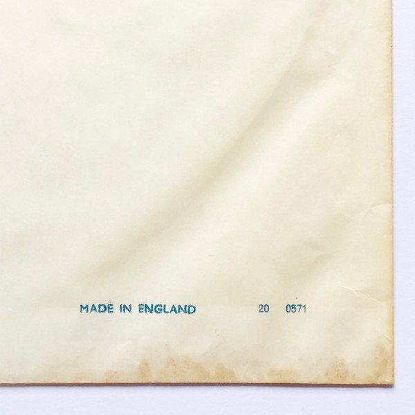 First UK issue. Sleeve printed by E.J. Day. Released in a double gatefold sleeve, with the pocket opening at the center of the second spread.