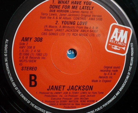 | B1 | What Have You Done For Me Lately (Dub Version) | 6:35 |