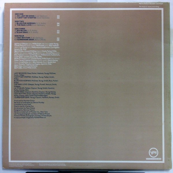 Recording dates: B2: Jan. 28, 1946 A1 to B1: possibly Jan. 28, 1946 C1 to D2: April 22, 1946 A1 to B2 recorded at Philharmonic Auditorium, Los Angeles C1 to D2 recorded at the Embassy Theater, Los Angeles