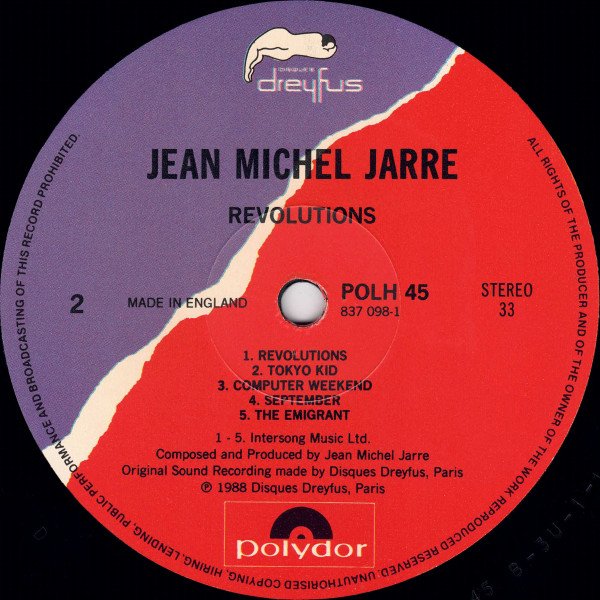 Recorded and mixed at Croissy Studio, France, except 'Ouverture' and Tokyo Kid' mixed at Guillaume Tell Studio, Paris. 'Revolutions' mixed at Studio Davout, Paris. Hank Marvin appears with special courtesy of [l100642]. ℗ 1988 Disques Dreyfus, Paris. © 1988 Disques Dreyfus, Paris. Marketed and distributed in the UK by Polydor Ltd.