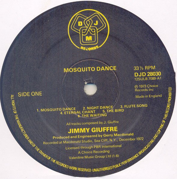 Sides 1 and 2 recorded at Macdonald Studios, Sea Cliff, New York, Dec. 1972. Sides 3 and 4 at the same location April 1975. Gatefold sleeve. compilation of The Jimmy Giuffre 3* - Music For People, Birds Butterflies & Mosquitoes & Jimmy Giuffre Three* - River Chant previously issued separately.