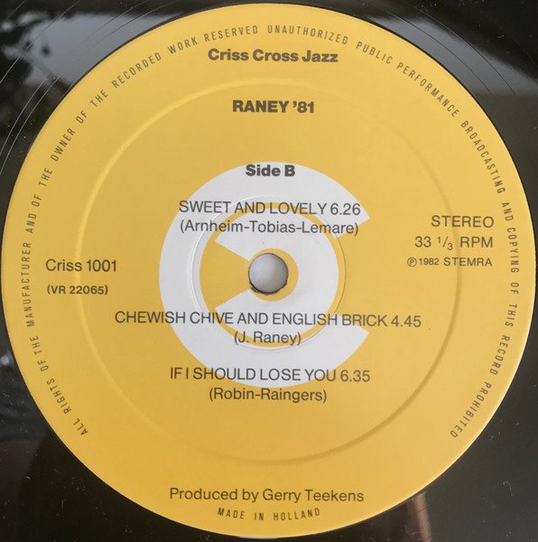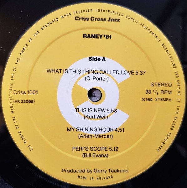 Recorded February, 1981 © 1981 by Criss Cross Jazz (back cover) ℗ 1982 STEMRA (labels)