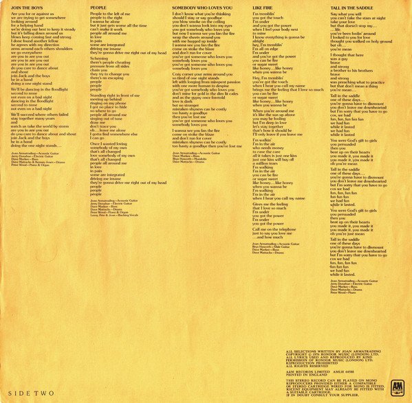 - Phonographic Copyright (p) – A&M Records Ltd.