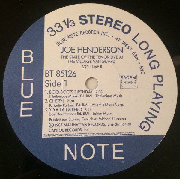 Recorded live at The Village Vanguard, New York City on November 14, 15 and 16, 1985. On back cover: BT 85126 PM 264 Imprimé en Holland par EMI Services Benelux B.V. Uden