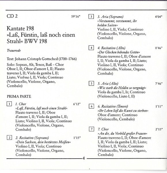 | Kantate 198 "Laß Fürstin, Laß Noch Ein Strahl" BWV 198 | ||