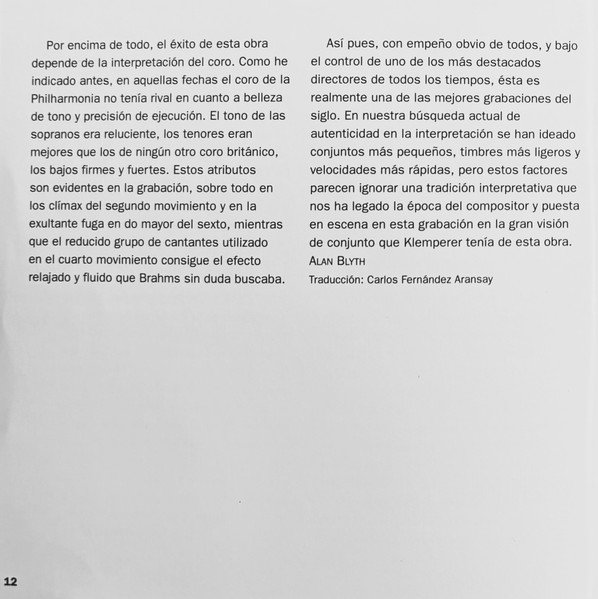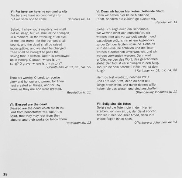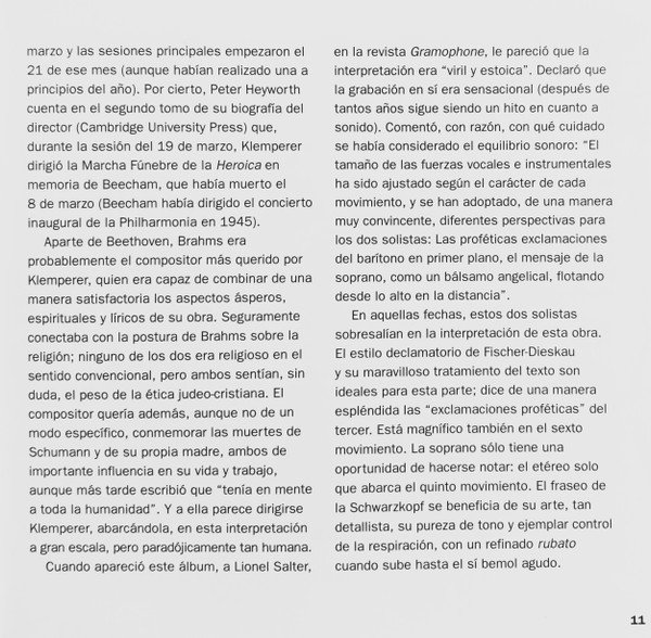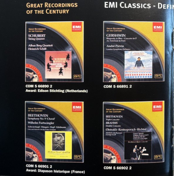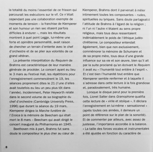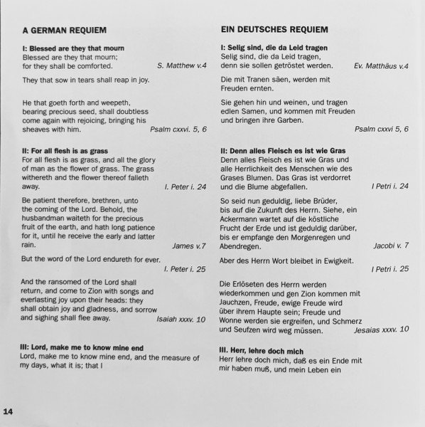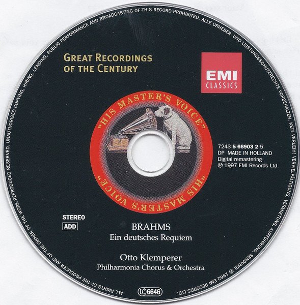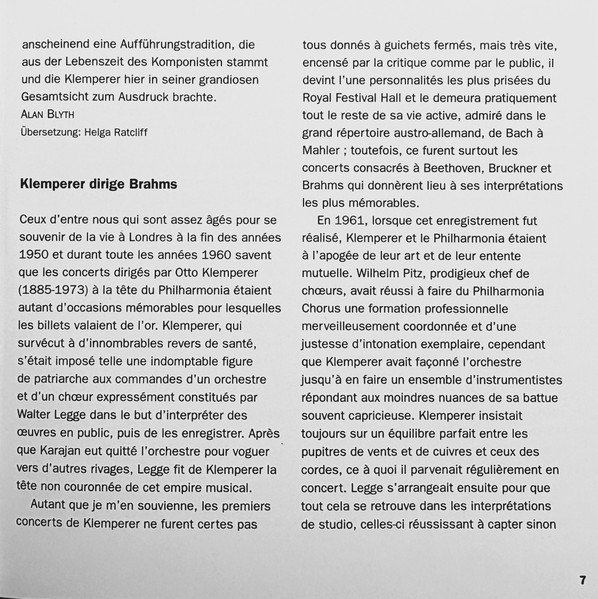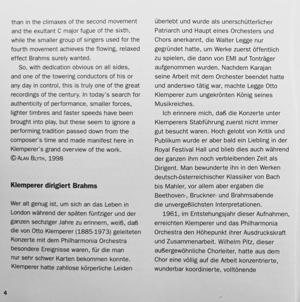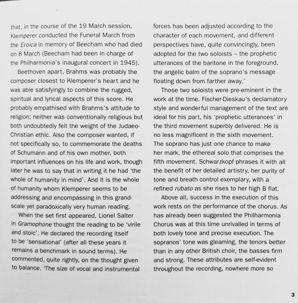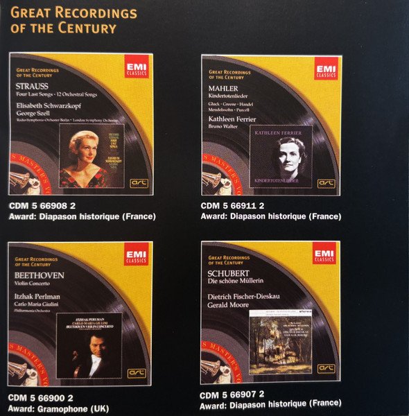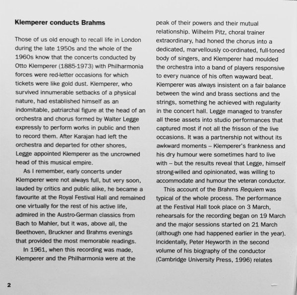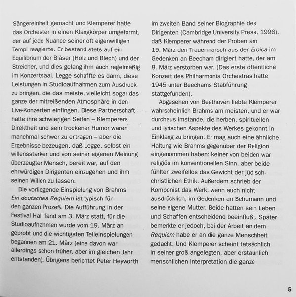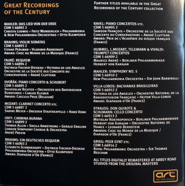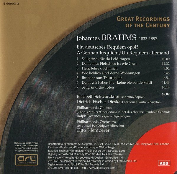 20 page booklet with additional colour central insert (4-pages) promoting other [l221034] releases Liner notes in English with German, French and Spanish translations Full vocal texts in German, with English and French translations Truncated Catalog Number: 5 66903 2 / Full track listings, artist and recording credits on the back cover.Recorded 2.I., 21, 23 & 25.III. and 26.IV.1961, Kingsway Hall, London ℗ 1962 The copyright in this sound recording is owned by EMI Records Ltd. Digitally remastered at Abbey Road Studios by Allan Ramsay Digital remastering ℗ 1997 by EMI Records Ltd. © 1998 EMI Records Ltd.