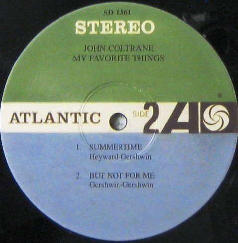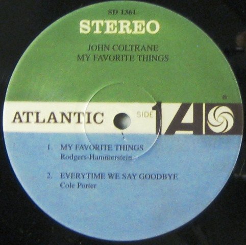 Blue and green label. John Coltrane is heard on soprano sax on `My Favorite Things' and 'Everytime We Say Goodbye'. He is heard on tenor sax on 'Summertime' and 'But Not For Me'. Lacquer cutting engineer and pressing plant derived from runouts.