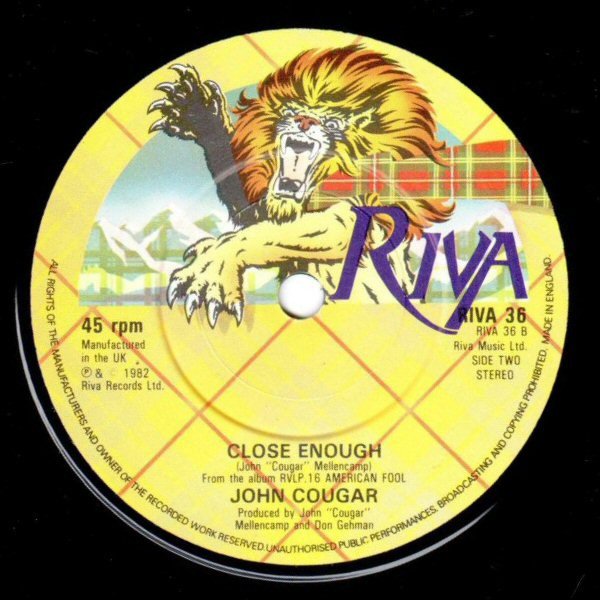 Picture sleeve: RIVA 36 Distributed by WEA Ltd. © 1982 Riva Records Ltd. Labels: RIVA 36 Riva Music Ltd. Manufactured in the UK. ℗ & © 1982 Riva Records Ltd. From the album RVLP.16 American Fool. Made in England