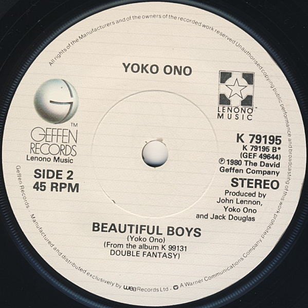Label Notes: ℗ 1980 The David Geffen Company Lenono Music Manufactured and distributed exclusively by WEA Records Ltd. (From the album K 99131 [r=613525]) Sleeve Notes: From the Geffen Records album [r613525] (K 99131) © 1981 and ℗ 1980 The David Geffen Company. Distributed by WEA Records Limited. This UK release comes in a matt paper picture sleeve with yellow text for artist names (front/rear of sleeve and a yellow star in the Lennono Music logo). A version with green text can be found [url=http://www.discogs.com/release/710452] here. [/url] Runout info: Variant 1: stamped except ’Damont’ on B-side which is etched All other variants: •Strawberry• is stamped, the rest is etched.
