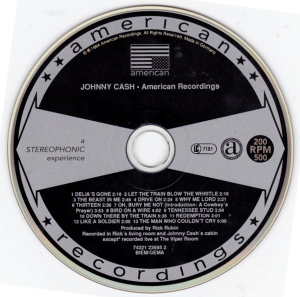 Includes replica of liner notes hand-written by Cash. Made in Germany (CD) Printed in Germany (back inlay) Printed in booklet: Recorded in Rick's living room and Johnny Cash's cabin except "Tennessee Stud" and "The Man Who Couldn't Cry" recorded live at The Viper Room. Printed on CD: Recorded in Rick's living room and Johnny Cash's cabin except * recorded live at The Viper Room.