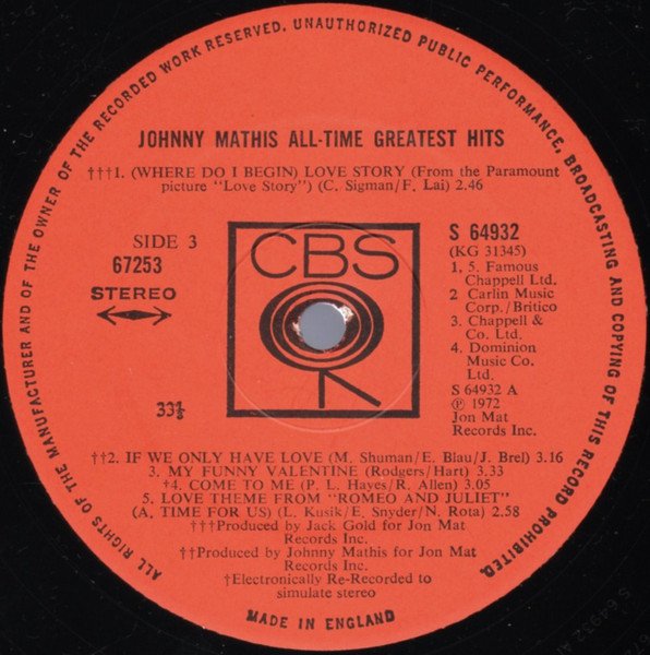 Johnny Mathis - Johnny Mathis' All-Time Greatest Hits