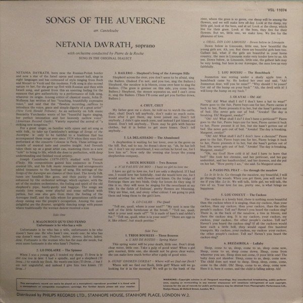 Joseph Canteloube - Songs Of The Auvergne Vol 1