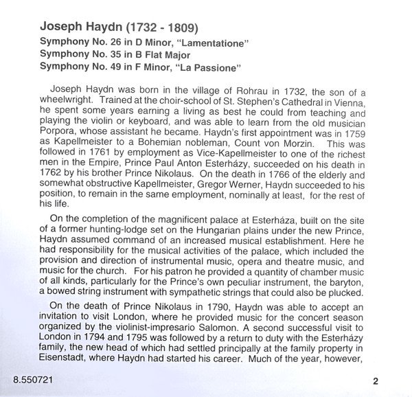 Joseph Haydn - Symphonies Vol. 6 - No. 26 "Lamentatione", No. 35 ● 49 "La Passione"