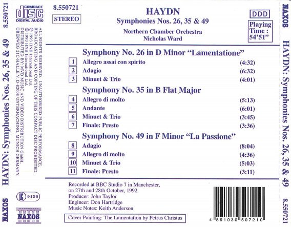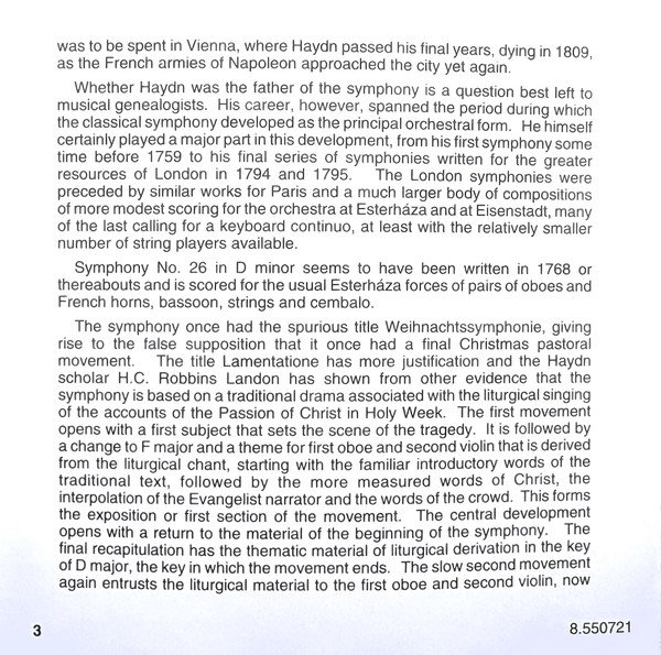 | Symphony No. 26 In D Minor "Lamentatione" | ||