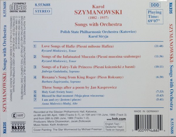 Recorded at the Silesian Philharmonic Hall, Katowice, on 8th and 9th April, 1989 (Tracks 5-7), on 10th and 11th June, 1989 (Track 3) and from 28th to 29th June, 1989 (Tracks 1-2).