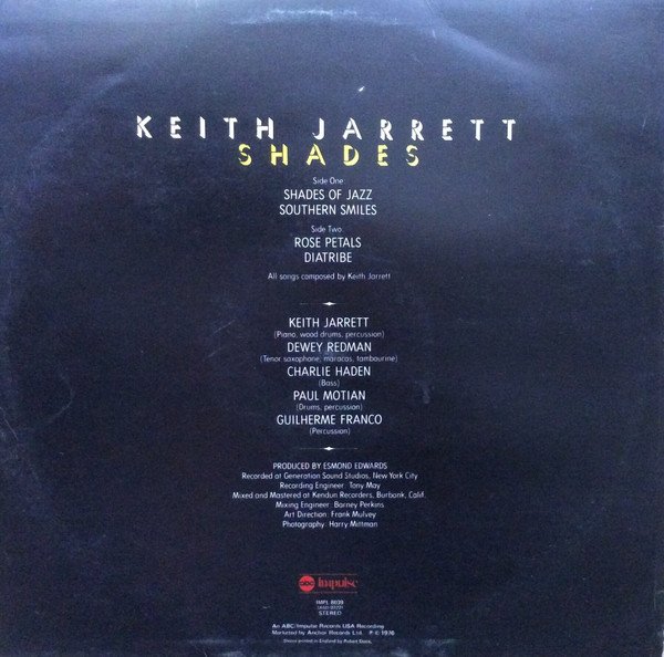 Recorded at Generation Sound, NYC Mixed and Mastered at Kendun Recorders, Burbank, Calif. An ABC/Impulse Records USA Recording Marketed by Anchor Records Ltd. ℗ © 1976 Sleeve printed in England by Robert Stace.