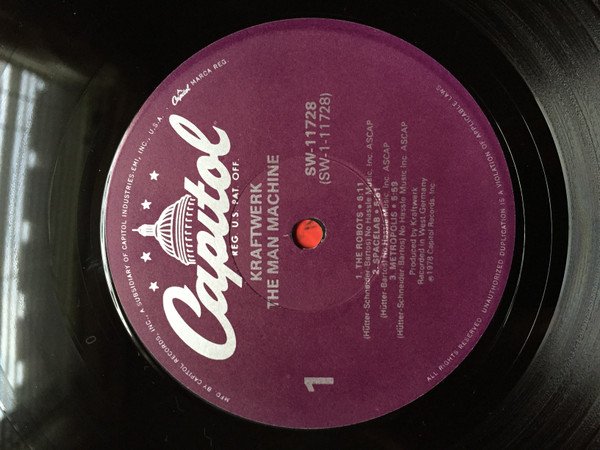 Purple Capitol center labels pressed at the Capitol Records pressing plant in Jacksonville based on the machine stamped zero "0" in the run out area. Recorded at KlingKlang Studio Düsseldorf Mixed at Studio Rudas Düsseldorf Leanard Jackson courtesy of Whitfield Records Produced in W. Germany Recorded in West Germany Mastered by Capitol ℗ 1978 Capitol Records, Inc. © 1978 Klingklang Music. Manufactured by Capitol Records, Inc., a subsidiary of Capitol Industries-EMI. Inc. Printed in U.S.A.