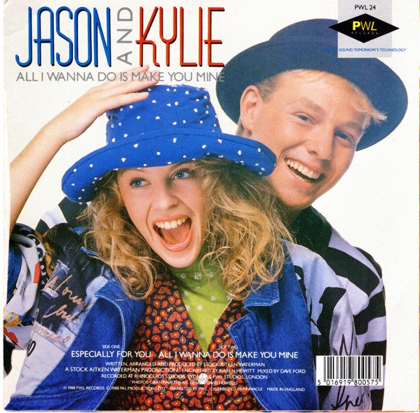 [Artists name variation] Kylie and Jason on front cover Jason and Kylie on back cover Kylie Minogue & Jason Donovan on labels. [Runouts] Stamped except 'NS'. etched. On sleeve rear: A Stock Aitken Waterman Production. Recorded at Rhinoceros Studios, Sydney & PWL Studios, London. ℗ 1988 PWL Records © 1988 PAL Productions Ltd. Marketed by PWL. Distributed by Pinnacle. Made in England. On labels: ℗ 1988 PWL Records Ltd. © 1988 PAL Productions Ltd. Made in France All Boys Music Ltd. This original UK release comes in a glossy picture sleeve. Some pressings have a white shadow behind text on front cover, whilst others have a black shadow behind. This version has WHITE lettering.