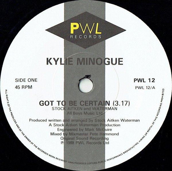 - Phonographic Copyright (p) – PWL Records Ltd.
