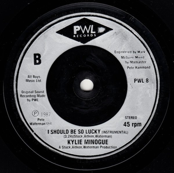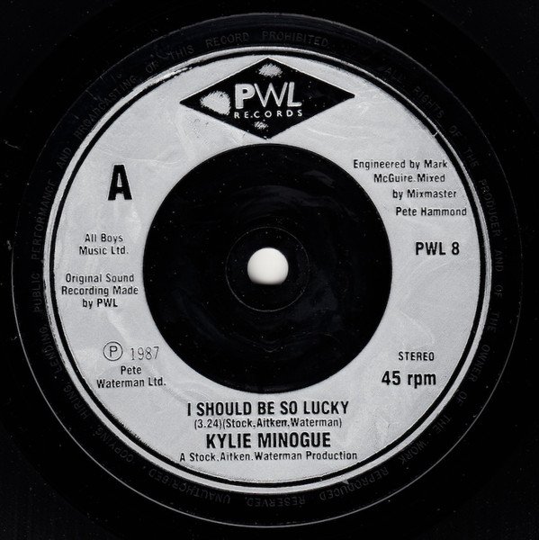 Issued in a paper sleeve and with silver injection moulded labels. This release is similar to [r=255886]. Sleeve: A Stock Aitken Waterman Production. Recorded and mixed at PWL - Today's Sound Tomorrow's Technology - Studios 1 and 2. © 1987 Mushroom Records Pty. Ltd. Aust. Sleeve and labels: A Stock, Aitken, Waterman Production. Original sound recording made by PWL ℗ 1987 Pete Waterman Ltd.