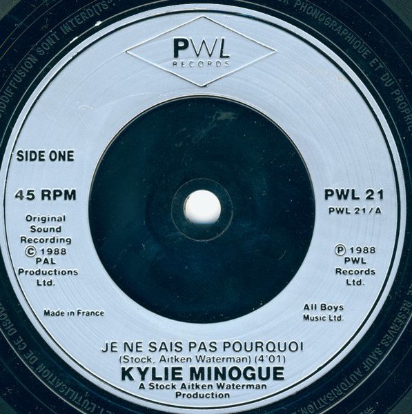 Side one - from the album "[m=12764]" Recorded at PWL Studios, London Kylie's vocals were recorded using the Calrec Soundfield microphone Card sleeve states 'Made in England' while label states 'Made In France'. Side A runout has a long string crossed out, it could be 425 PWL 21 PDO.