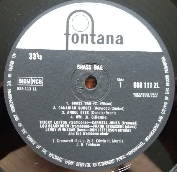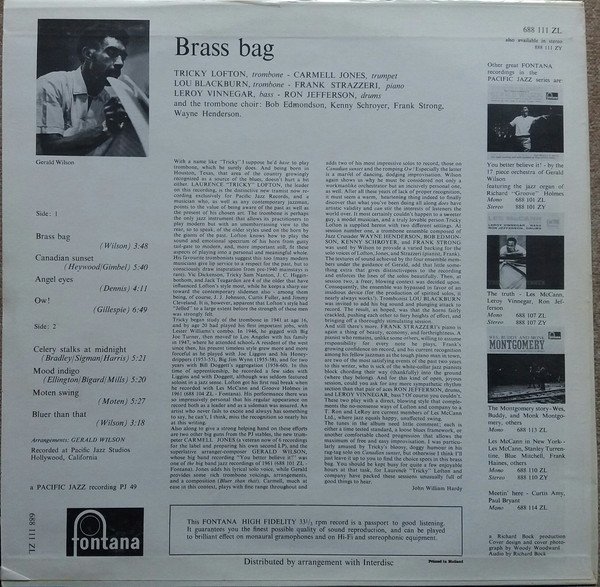 Recorded at Pacific Jazz Studios, Hollywood, California. Edmondson, Schroyer, Strong and Henderson are credited as a "trombone choir."