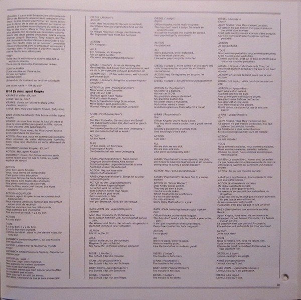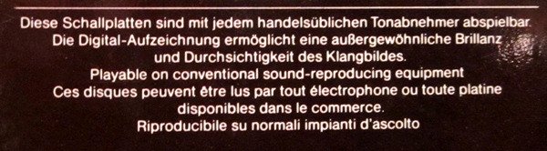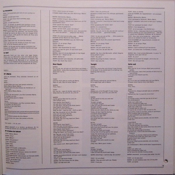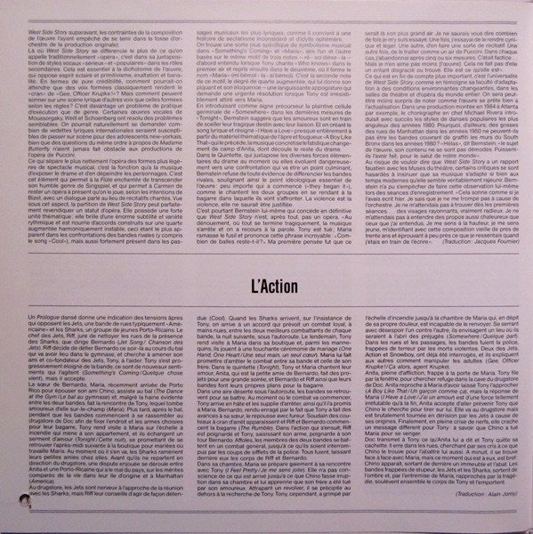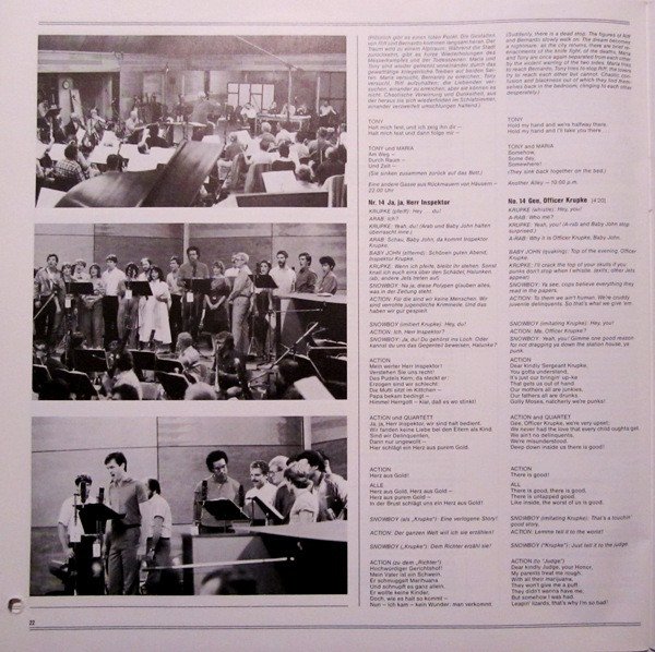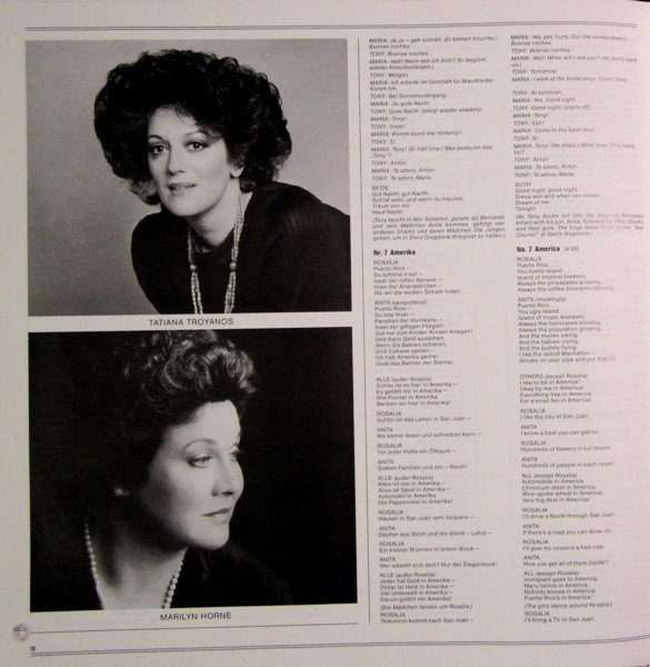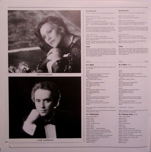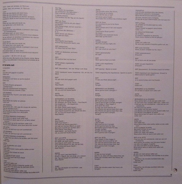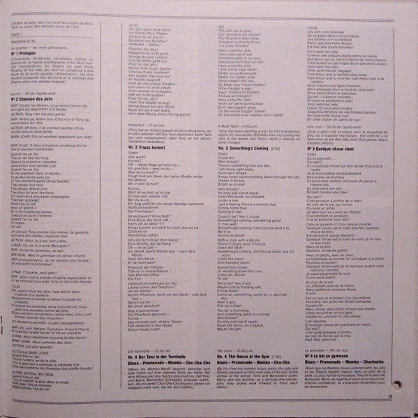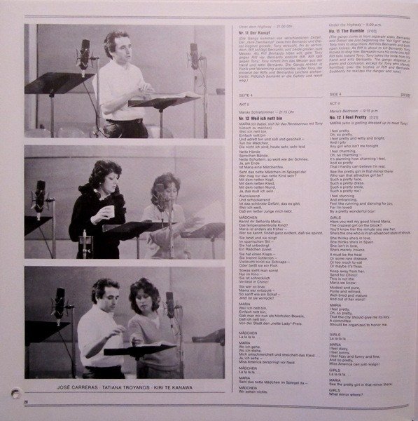 Gatefold sleeve & booklet assembled by 'PRS Hannover'. Gatefold inner image has colors (instead of B&W) and gatefold cover with 24 page booklet containing liner notes in English, German, French and Italian, and lyrics in German, English and French. PRS Hannover embosser on back cover, lower left part (8,7cm from left side) Cover info: Digital Recording Originally produced on Broadway by Robert E. Griffith and Harold S. Prince by arrangement with Roger L. Stevens ℗ 1985 Polydor International GmbH, Hamburg Cassette catalog# 415 253-4 GH2 CD catalog# 415 253-2 GH2 Made in West Germany Printed in West Germany by Münstermann-Druck KG, Hannover NB. Also versions printed by J. Alt GmbH, Niederdorfelden Booklet info: Reprinted from the notes to the Original Broadway Cast recording by courtesy of CBS Masterworks. © 1957 CBS Inc. German translation of Leonard Bernstein notes: © Knaus Verlag München Publishers: G. Schirmer, Inc., New York Libretto Copyright © 1956 by Arthur Laurents, Stephen Sondheim and Leonard Bernstein. Copyright © 1958 by Arthur Laurents, Leonard Bernstein, Jerome Robbins and Stephen Sondheim. Copyright © 1957, 1959 by Leonard Bernstein and Stephen Sondheim. Texts and translations reprinted by kind permission of G. Schirmer, Inc., New York Cover Design: Klaus Witt, Hamburg Runouts are stamped