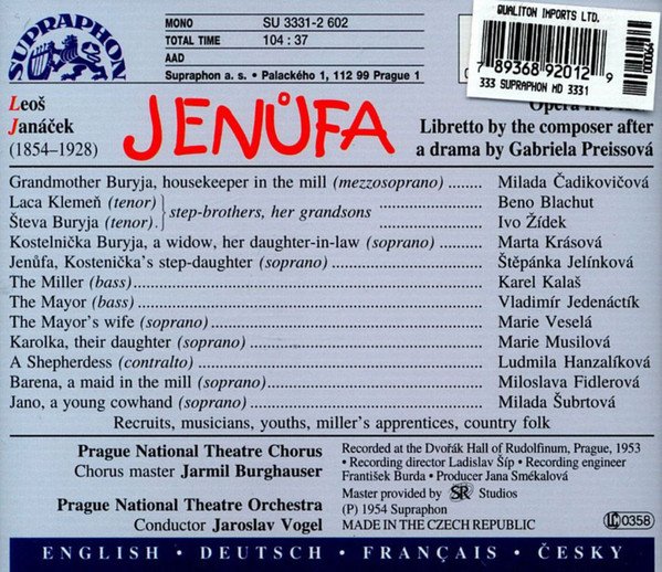 ℗ 1954 Supraphon Made in the Czech Repiblic Recorded at the Dvořák Hall of Rudolfinum, Prague, 1953