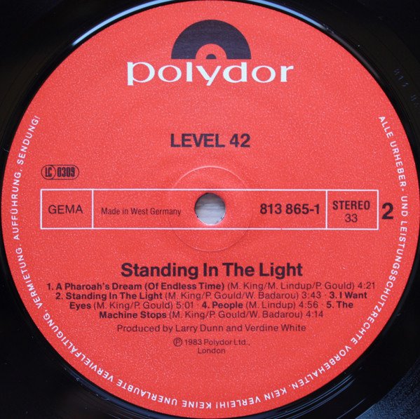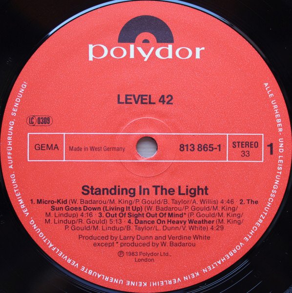 Recorded at Complex, LA. "Out Of Sight, Out Of Mind" recorded at Marcus Studios, London. All tracks mixed at Indigo Ranch. ℗ 1983 Polydor Ltd. (London) © 1983 Polydor Ltd. (London) Basses by J.D. Strings by Superwound Agency - Asgard, 155-157 Oxford Street, London W1. 01 734 3426 Aus den Hause Deutsche Grammophon Gesellschaft mbH · Hohe Bleichen 14 - 16 · 2000 Hamburg 36 Printed in West Germany Made in West Germany Printed inner sleeve with lyrics. A non-ink debossed "PRS Hannover" stamp can be found on the back cover. Runouts are stamped.