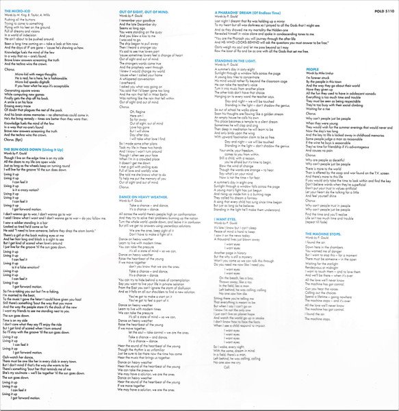 Issued with a lyric / credit inner sleeve. Durations do not appear on this release. Made in England. This appears to be completely identical to [r=15785273] other than the orientation of the copyright text ring circling the disc labels (see photos) and one more line of text in the top right corner of the sleeve's rear (see photos).