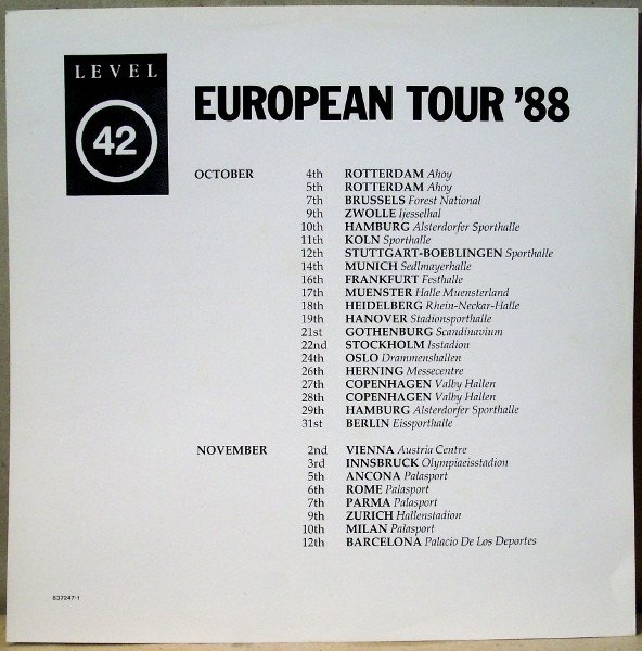Sleeve-info: Recorded at Miraval, France. Mastered at The Townhouse. Original Sound recording made by Polydor Ltd. (UK) ℗ 1988 Polydor Ltd (UK) © Polydor Ltd (UK) 1988 Place of manufacture of record as stated on label. Marketed and Distributed in the UK by Polydor Ltd. Embossed PRS HANNOVER logo present on backcover (lower left) Innersleeve-info: Lyrics reproduced by kind permission of the publishers Level 42 Music/Chappell Music Ltd Rag Ruby Red Productions Ltd/Polygram Music Publishing Ltd Island Visual Arts Ltd. Label-info: Made in West Germany Printed innersleeve with lyrics and credits. Runout-info: Stamped runouts