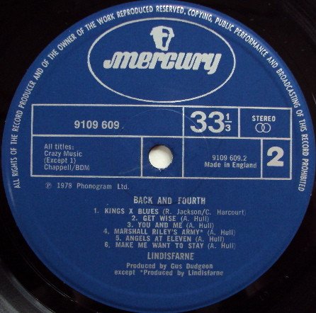 Track A1 spelt "Juke Box Gypsy" on back cover and "Juke Box Gipsy" on label. Housed in a gatefold sleeve. Durations do not appear on this release. Timings via stopwatch. Runouts are part stamped, part etched.