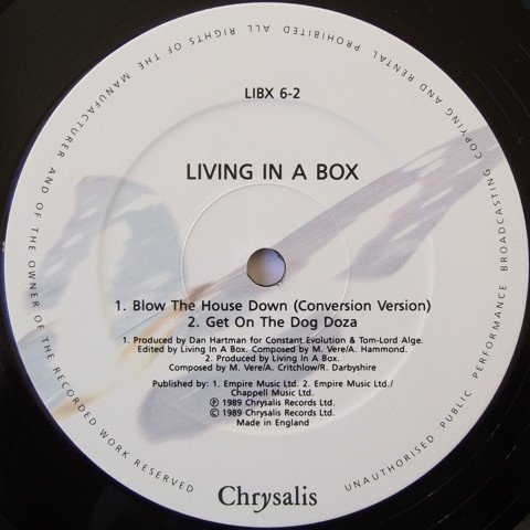 ℗ 1989 Chrysalis Records Ltd. © 1989 Chrysalis Records Ltd. Empire Music Ltd. : Track A, B1, B2 Chappell Music Ltd. Track A, B2 Track A and B1 produced for Constant Evolution Made in England