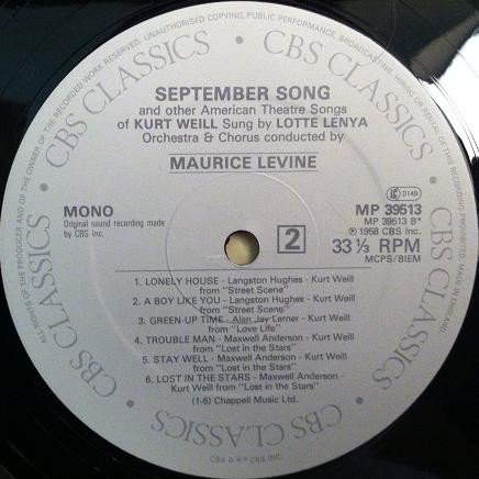 Lotte Lenya - September Song And Other American Theatre Songs Of Kurt Weill