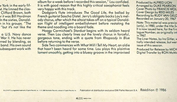 Recorded at Rudy Van Gelder Studio, Englewood Cliffs, NJ, January 20, 1967 DMM (Direct Metal Mastering) on labels and on back of sleeve. Publishers: A1: Éd.: ASCAP-Warner Bros. Inc. A2: Éd.: BMI-Melody Lane Publication A3: Éd.: ASCAP-Intersong USA, Inc. SODRAC A4: Éd.: ASCAP-Mills Music, Inc. B1: Éd.: ASCAP-Chappell Music B2: Éd.: ASCAP-Williamson Music, Inc. Adm. by Chappell & Co. B3: Éd.: ASCAP-CBS Robbins Catalog. Intersong Music.
