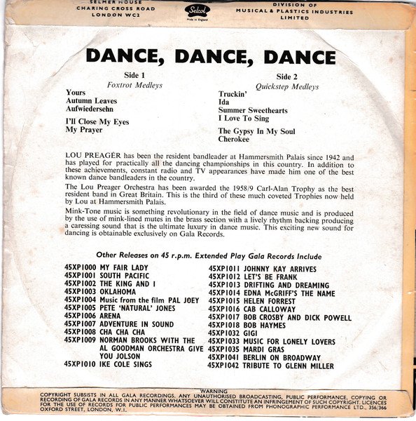 Mink-Tone music is something revolutionary in the field of dance music and is produced by the use of mink-lined mutes in the brass section with a lively rhythm backing producing a caressing sound that is the ultimate luxury in dance music. This exciting new sound for dancing is obtainable exclusively on Gala Records.