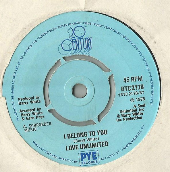 Pale blue label with '20th Century' logo at 12 o'clock and 'Pye' logo at 6 o'clock