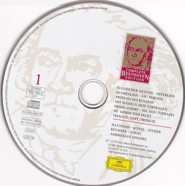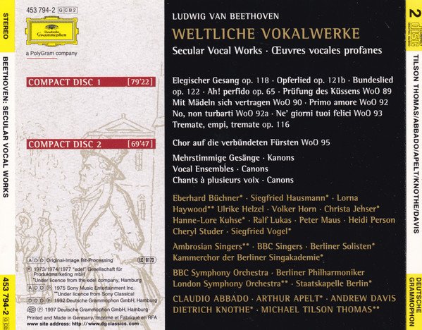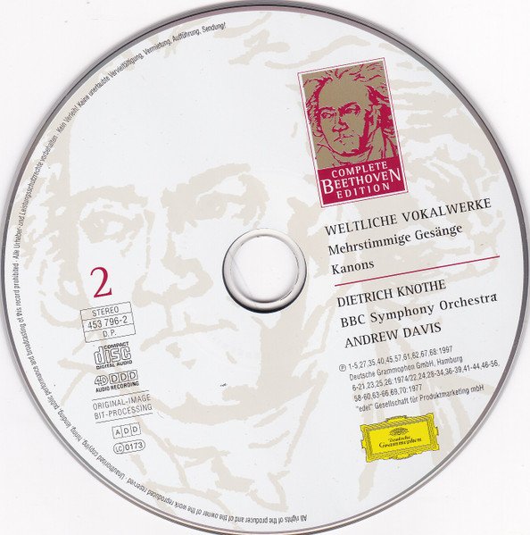 Complete Beethoven Edition · Volume 18 of 20 Slipcase containing a booklet and one fat-box jewel case, holding 2 CDs. ℗ 1973 / 1974 / 1977 "edel" Gesellschaft für Produktmarketing under license from edel company, Hamburg. ADD ℗ 1975 Sony Music Entertainment Inc. und er liecense from Sony Classical. DDD ℗ 1992 Deutsche Grammophon GmbH, Hamburg. ℗ 1997 Deutsche Grammophon GmbH, Hamburg. Printed and made in Germany / Imprimé et fabriqué en RFA [on back inlay card].