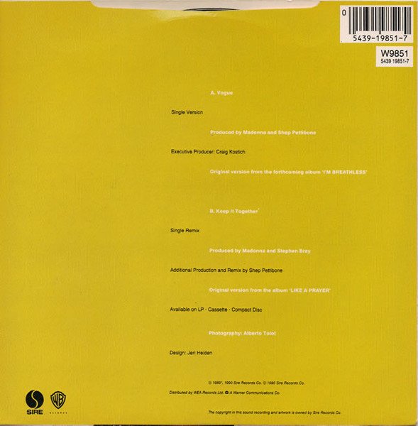℗ 1989, 1990 Sire Records Co. © 1990 Sire Records Co.Made in UK