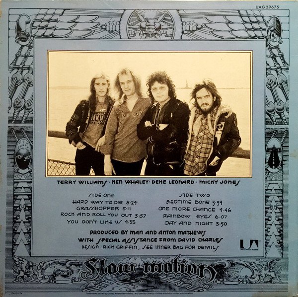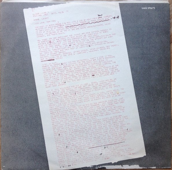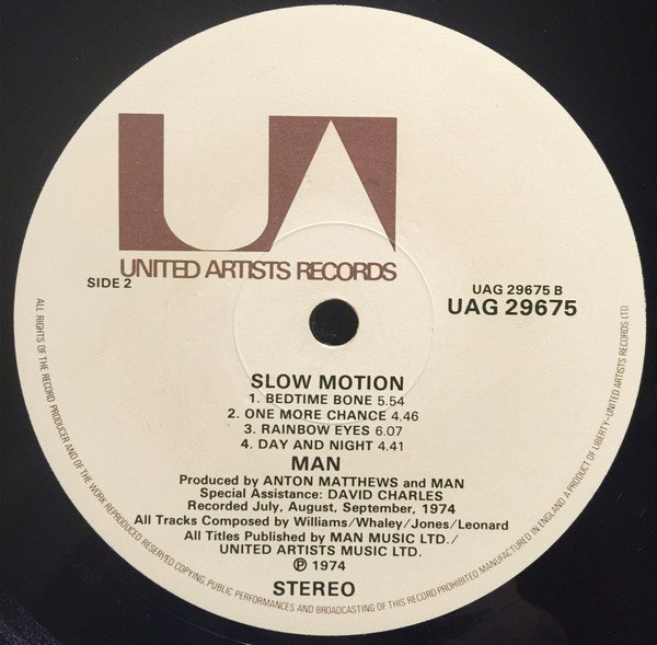 Matt sleeve; fully laminated sleeve edition is here: [r=28623088]. Recorded at Rockfield's New Flash, Ultra Modern 24 Track Studio. Mixed at Olympic, Ramport and Morgan Studios. Manufactured in England Three durations differ on labels vs. back cover. A1: 5:37 vs. 5:24 A3: 4:32 vs. 3:57 B4: 4:41 vs. 3:50 Printed on labels: Recorded July, August, September, 1974 All Titles Published by Man Music Ltd. / United Artists Music Ltd. ℗ 1974