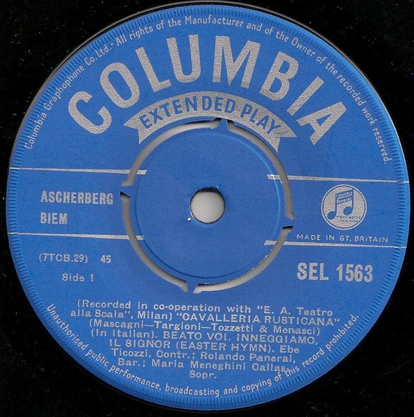 Recorded in co-operation with "E.A. Teatro Alla Scala" Milan. Made and Printed in Great Britain.