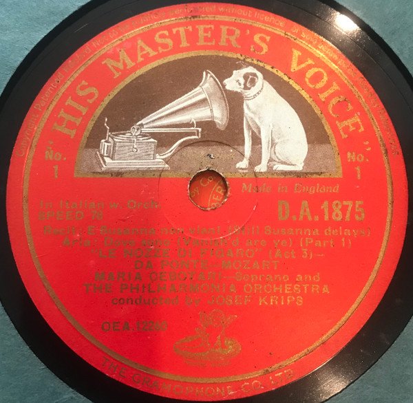 Italian Advertised as "HMV January Records" in The Gramophone Magazine, January 1948, pii. Image on this release shows tax code 'DT' which is slightly later (April 1948 to Dec 1950).