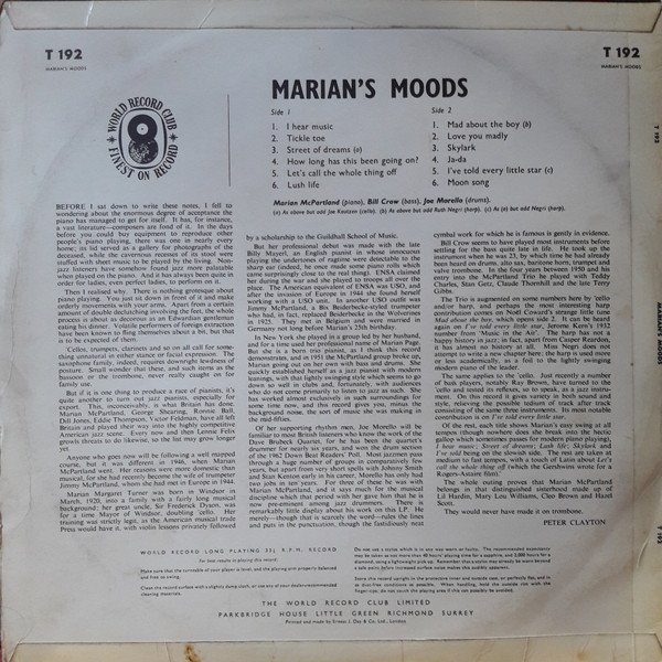 "T 192" on sleeve, "T. 192" on labels. Not issued in stereo. Also issued as a 3¾" mono reel.