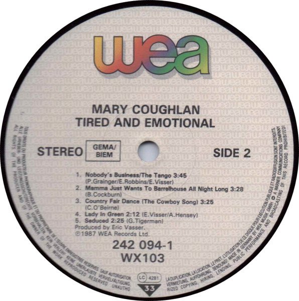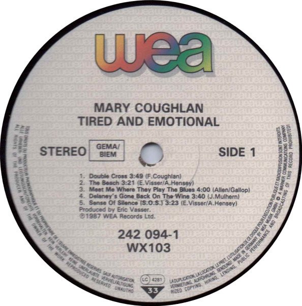 From back cover: Until October 1983 Mary Coughlan sang in the bathtub - only. Along came Dutch composer and musician Eric Visser and pulled the plug. She tossed out the ducks,steampressed her glad rags and off they sped to enter a talent competition in a Salthill nightspot with a song Erik composed for her. Luck would have it she lost. Several television appearances immediately followed and now Mary`s moody and sensuous voice can be heard on the wireless throughout the country. This is the best debut album she has ever done. So now!