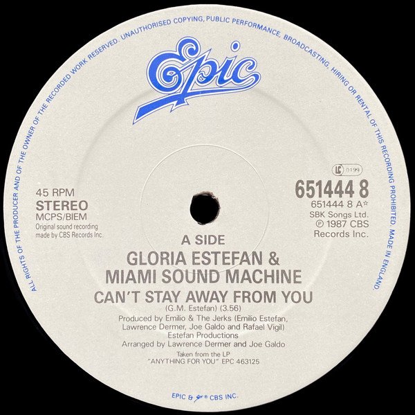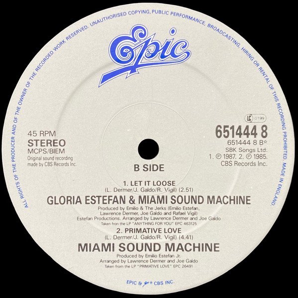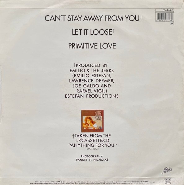 Reissued in January 1989 after the success of the album “Anything For You” The first 12” [r5943775] released in May 1988 © 1988 CBS Records Inc. ℗ 1987, 1985 CBS Records Inc. Made in England