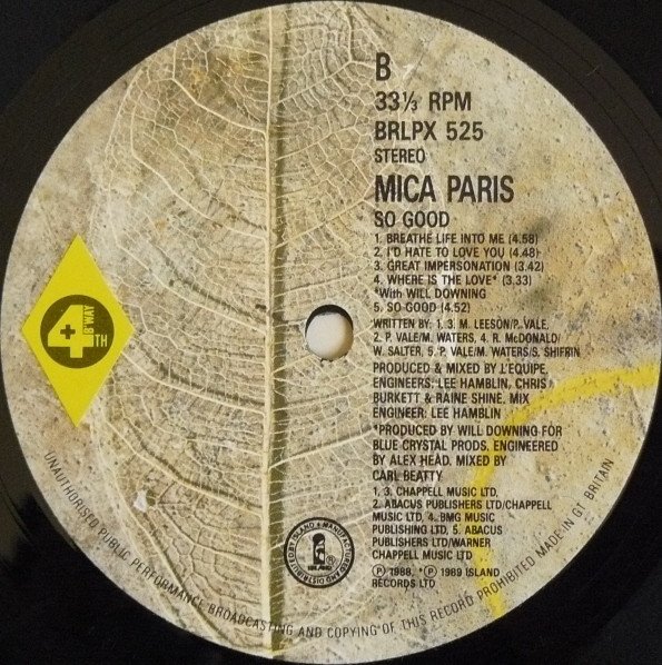 This release (BRLPX 525) was issued a year after the original release ([url=http://www.discogs.com/Mica-Paris-So-Good/release/1823263]BRLP 525[/url]), following the success of the single "Where Is The Love", which replaced the track "Words Into Action" on the original release.