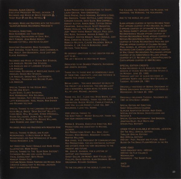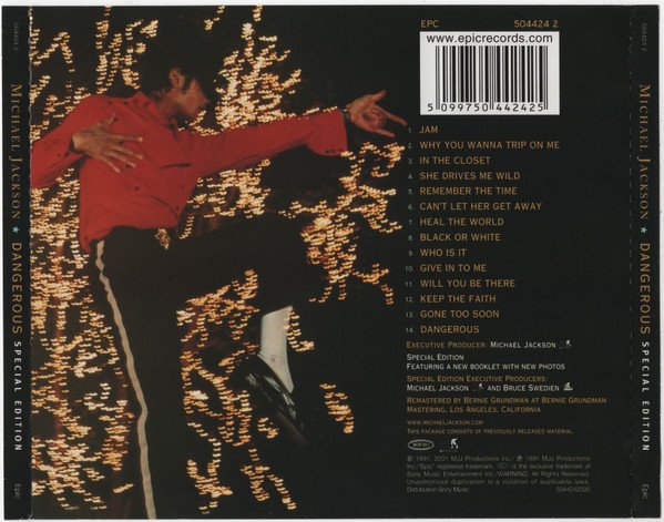 No slipcase and no Sony Music logo present on the back cover or on the CD of this edition. © 1991, 2001 MJJ Productions Inc. ℗ 1991 MJJ Productions Inc. Made in Austria.